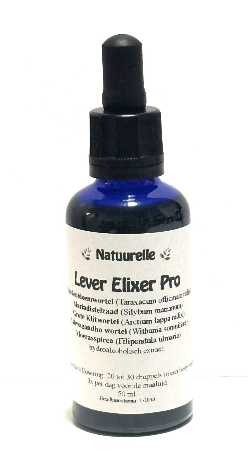 Lever Elixer is een krachtige tinctuurformule van drie geneeskrachtige kruiden: Mariadistel, Paardebloemwortel en Moerasspirea. Deze zorgvuldig samengestelde tinctuur is extra sterk geconcentreerd, waardoor al een kleine dosering voldoende is voor merkbaar effect.
